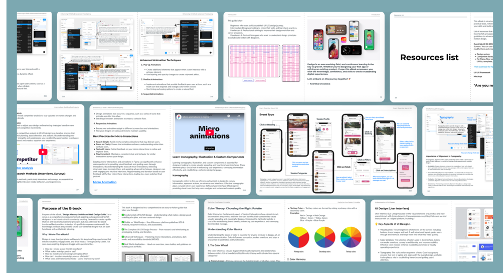 "Design Mastery" is designed specifically for beginners and aspiring designers who want to learn from someone actively engaged in the industry. With this e-book, you’ll gain the knowledge, skills, and confidence to excel in mobile and web design, setting you on the path to success.
